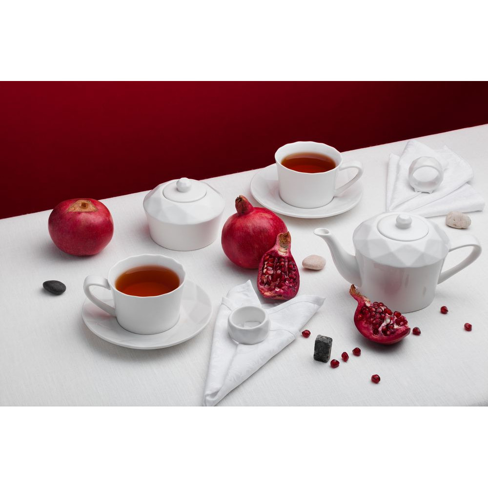 Линейка столовой посуды Diamante Bianco — настоящий бриллиант коллекции Altavolo. Структура и пропорции граней сахарницы в точности повторяют верхнюю часть бриллианта классической огранки — корону. Присмотритесь — и вы увидите, как играет свет на молочно-белом фарфоре.Концепция и дизайн: Михаил Чистяков