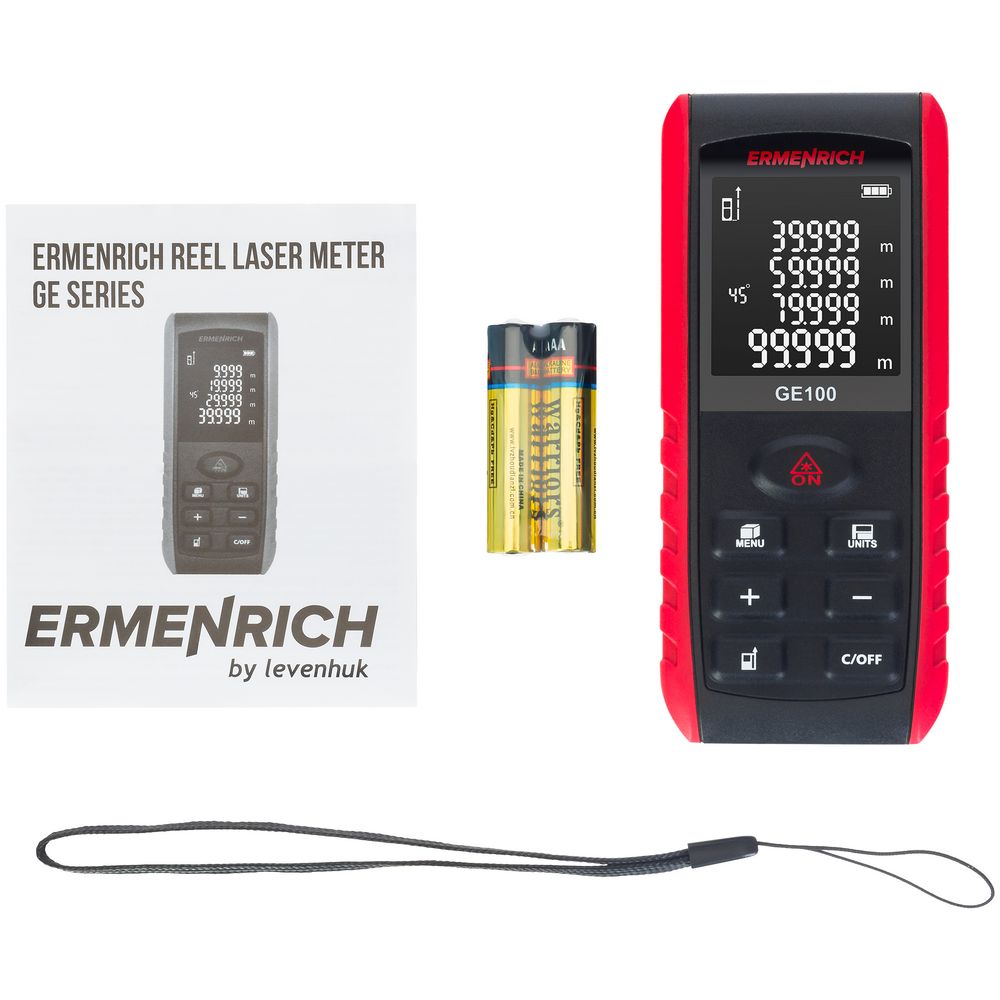 Ermenrich Reel GE100 — лазерная рулетка для самого широкого применения при измерении линейных размеров, площадей и объемов помещений, зданий и сооружений.